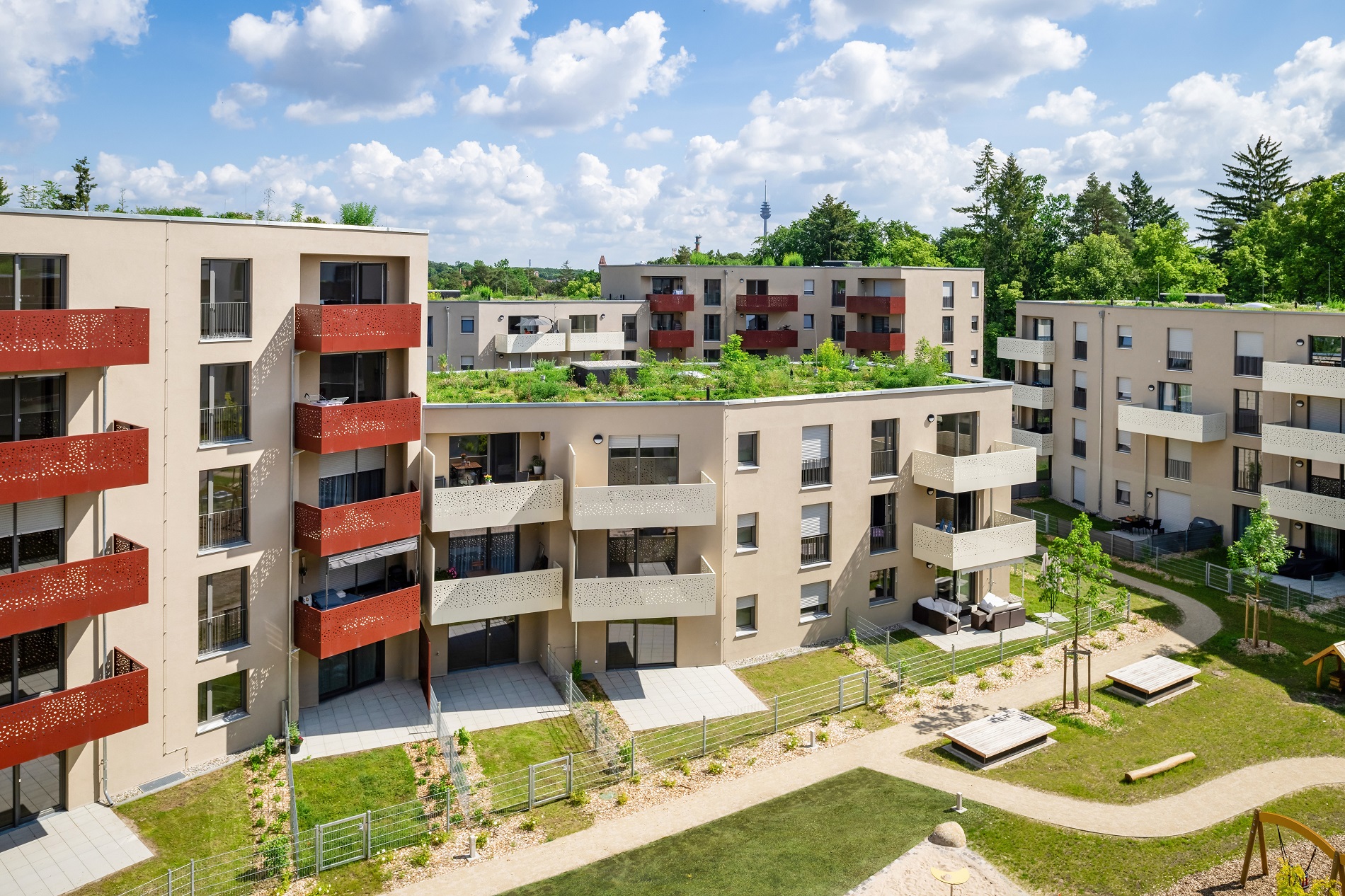 Ein weiterer Innovationsbaustein ist eine standardisierte Wohnbau-Spezialentwicklung mit jeweils 24 Wohneinheiten auf vier Geschossen, die sowohl für den geförderten als auch für den frei finanzierten Wohnungsbau geeignet ist. Durch hohe Wiederholbarkeit und reduzierte Ingenieurleistungen entsteht ein besonders wirtschaftliches und zugleich hochwertiges Bauprodukt.